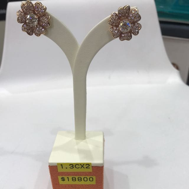 Diamond earring 1.3carat x 2.Set in Rose Gold 18k. $18000. Three Crowns Jewellery & Watch Pte Ltd #04-121B Far East Plaza. Singapore 228213. Mobile 96373733 Edmund
